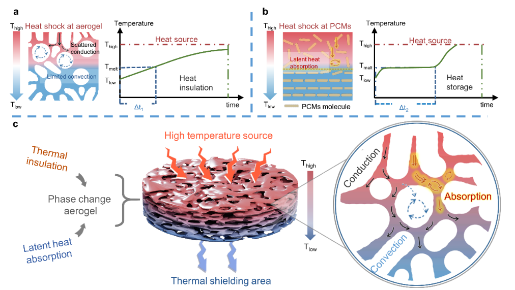 图1新型相变气凝胶的设计思路及其动态热防护机制