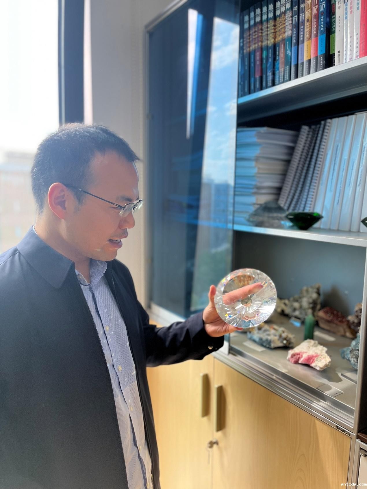 王永刚研究员在展示一颗金刚石(的水晶模型)